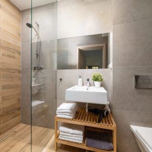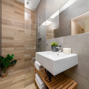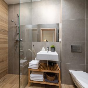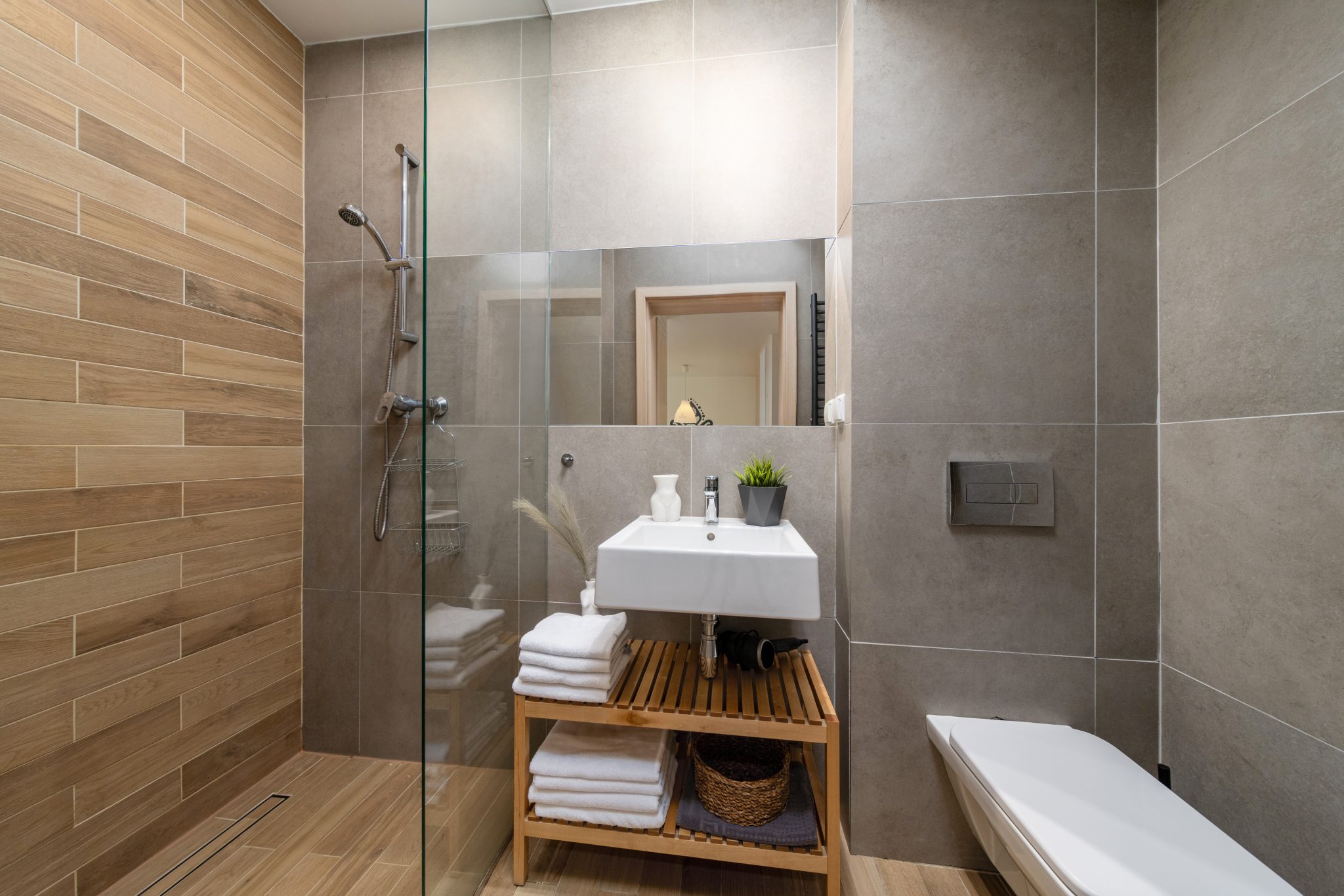 łazienka z prysznicem (wyposażona w suszarkę do włosów)