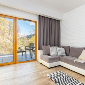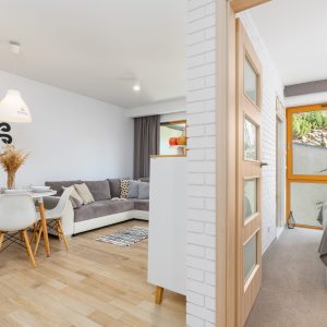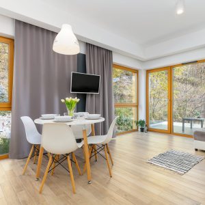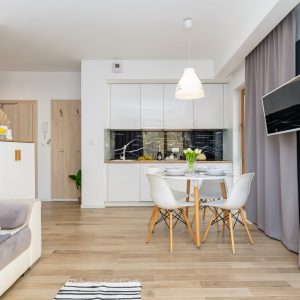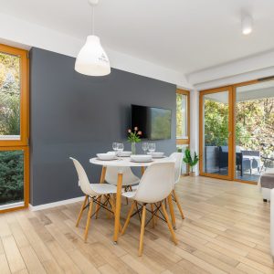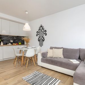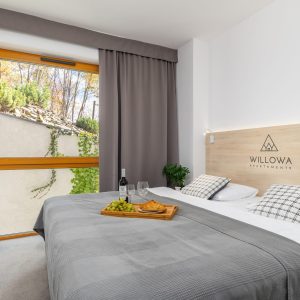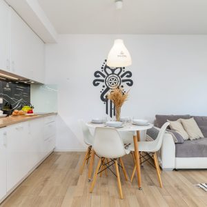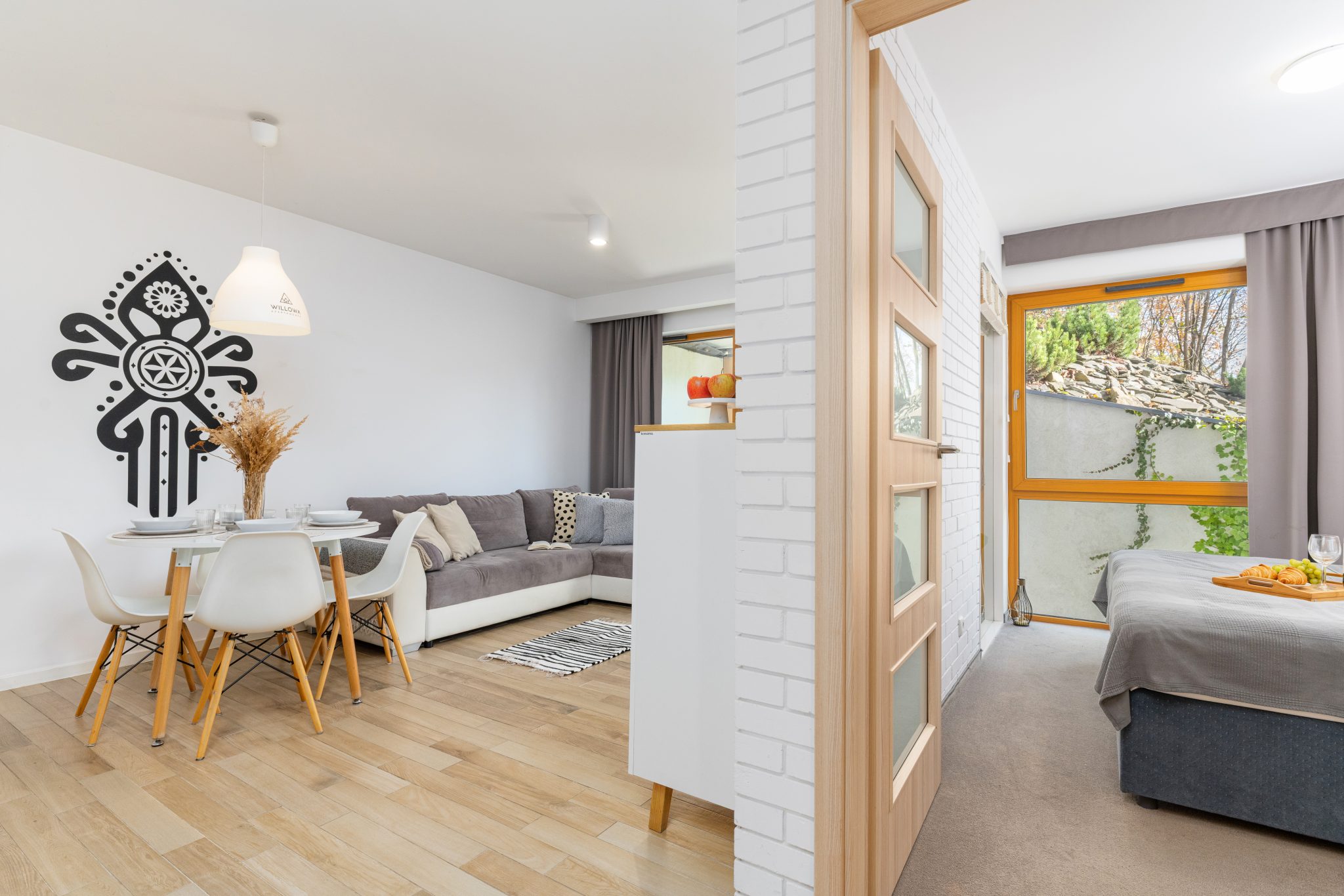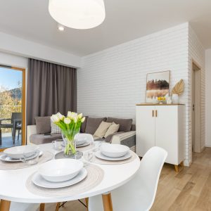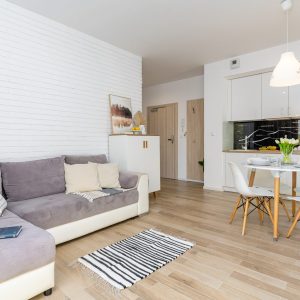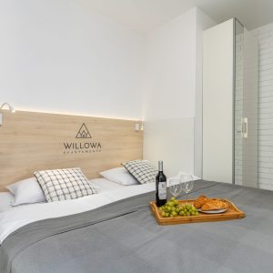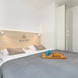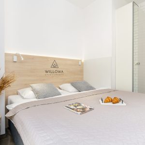 Apartament o powierzchni 55m2 znajduje się na 3 piętrze. To nasz największy apartament, dodatkowo przygotowany dla gości niepełnosprawnych.