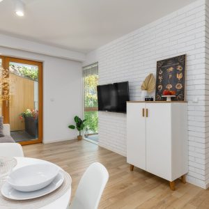 Apartament o powierzchni 48m2 znajduje się na pierwszym lub drugim piętrze budynku.