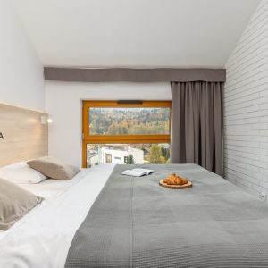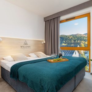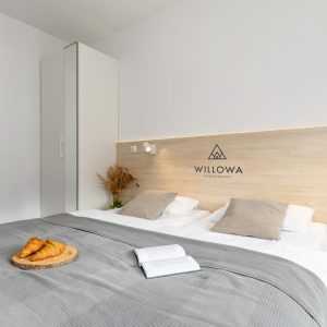 - sypialnia z wygodnym łóżkiem małżeńskim (z możliwością podzielenia na dwa oddzielne łóżka) oraz dużą szafą na ubrania