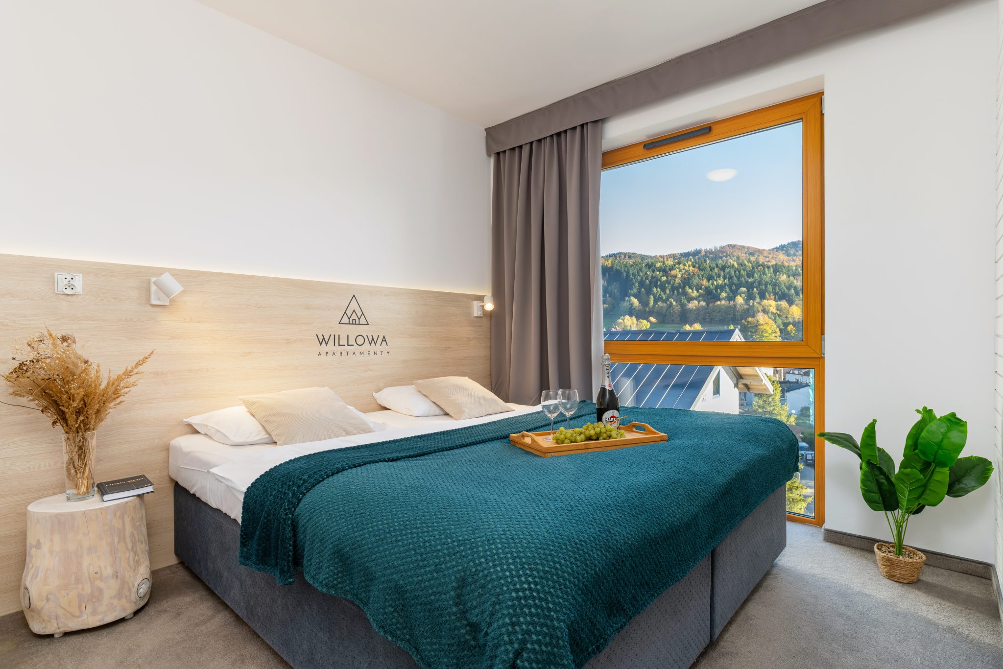 - sypialnia z wygodnym łóżkiem małżeńskim (z możliwością podzielenia na dwa oddzielne łóżka) oraz dużą szafą na ubrania