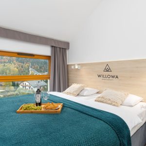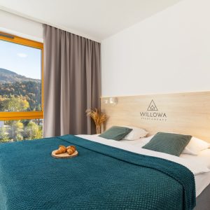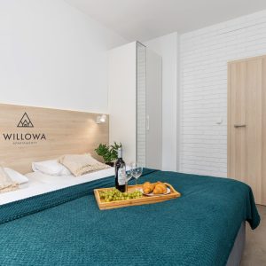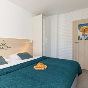 - sypialnia z wygodnym łóżkiem małżeńskim (z możliwością podzielenia na dwa oddzielne łóżka) oraz dużą szafą na ubrania
